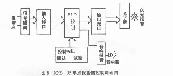 3. 试验、确认、消音、复位按钮和报警信号到来时的报警器的状态见表 ( 一 ) 和 ( 二 ), 图 8所示为报警器控制原理图。