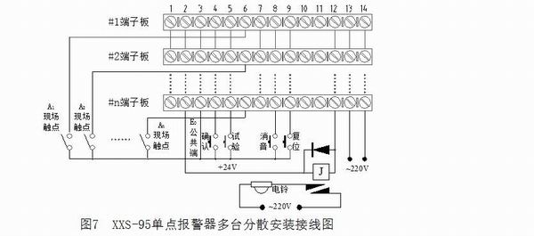 ( 二 ) 分散安装接线:图7 为单点多台并联接法。